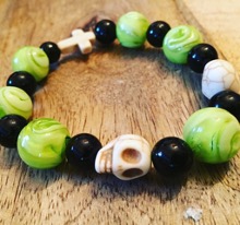 Here are a few of the things I’ve made over the years, including a dress, creepy book totes, napkin rings, a bracelet, a decoupaged spellbook, Halloween treats, and a Halloween tree decorated with dollar store items.