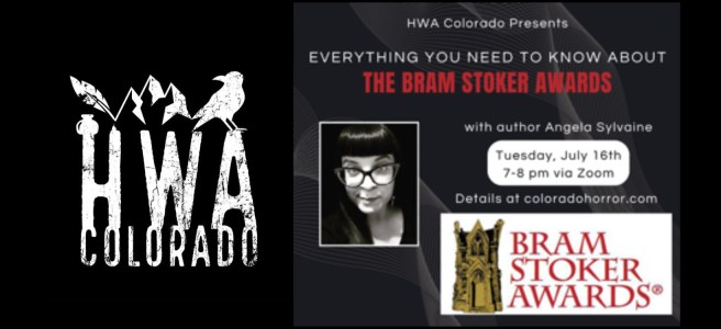 Join the HWA Colorado and HWA CO Secretary and author Angela Sylvaine for a virtual presentation on Everything You Need to Know About the Bram Stoker Awards on Tuesday, July 16, 2024, from 7 to 8:30 pm MT via Zoom. This online event is free and open to members of the HWA. We’ll cover everything … Continue reading Everything You Need to Know About the Bram Stoker Awards